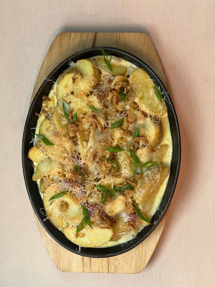 Соковитий вугор, авокадо, свіжий огірок, вершковий сир і рис для суші — усе це загорнуте в норі, прикрашене смаженою цибулею та полите унагі соусом. Подається на бамбукових листах з імбиром і васабі. Глибокий смак і ніжна текстура в одному ролику.